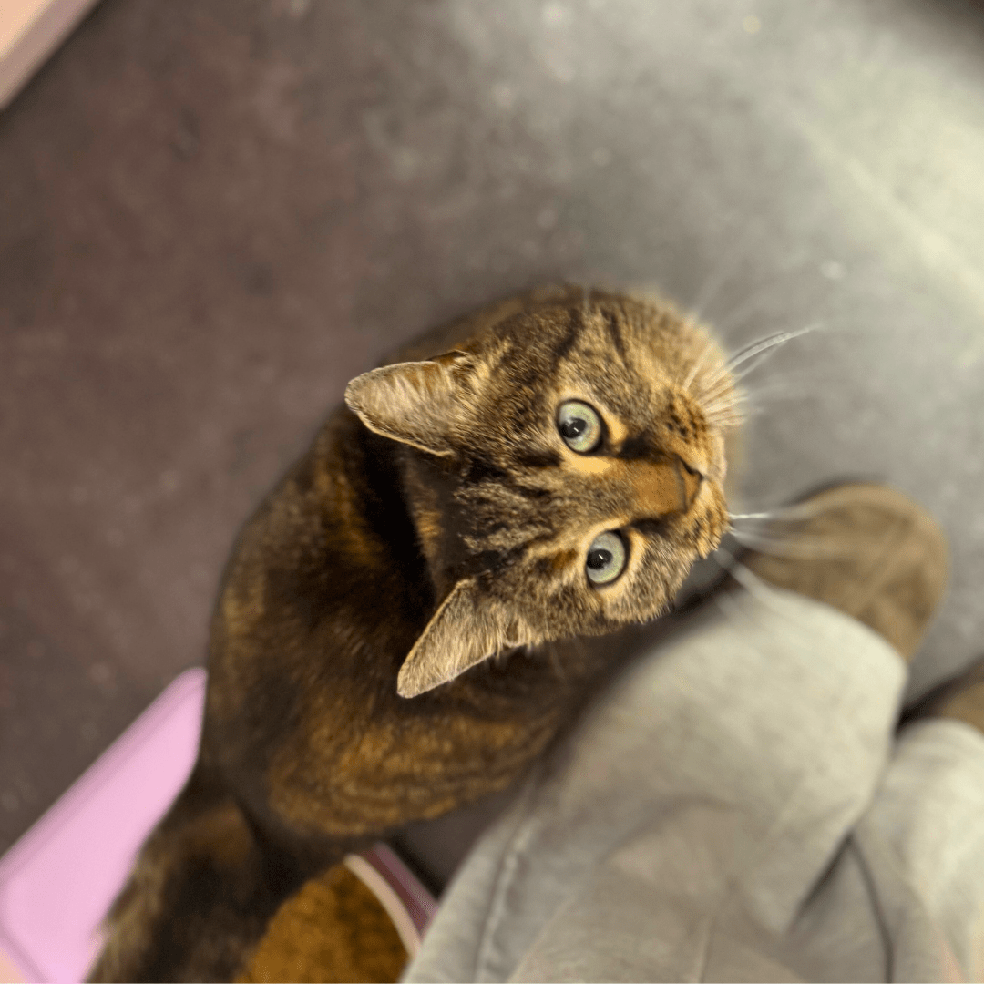 Gezond ben ik volledig in orde, dus ik ben helemaal klaar voor een warme thuis waar ik mag zijn wie ik ben. Over andere katten kunnen we op dit moment nog niet met zekerheid spreken. In opvang reageer ik heel rustig op hun geur, geluiden en wanneer ik ze zie, maar we hebben dit nog niet actief kunnen testen. Wat wel duidelijk is, is dat ik zelf een heel rustig katje ben.
